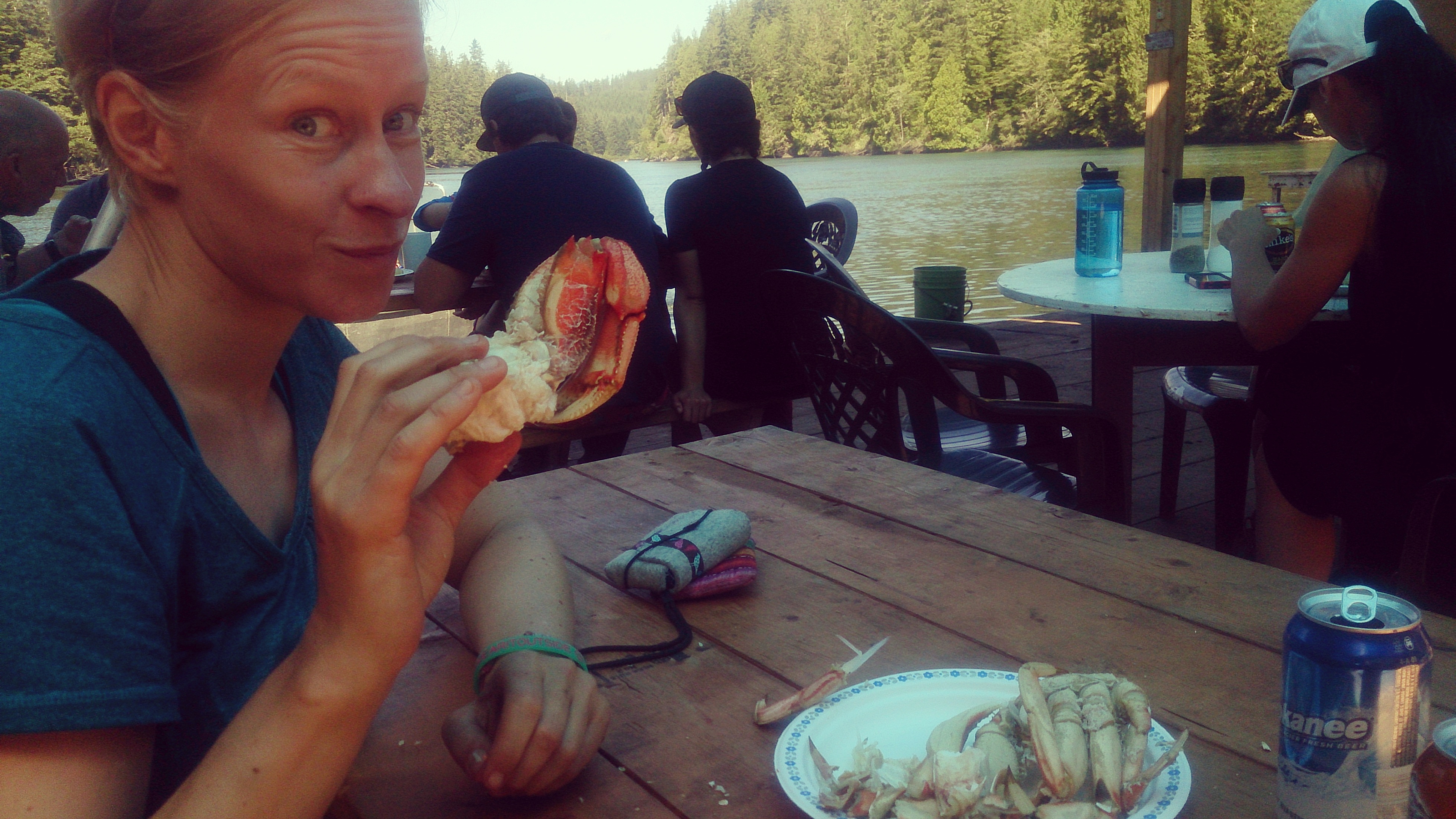 It took us a while to catch a ride in the Center of the World “Port Renfrew”, but someone finally stopped and with another ride we were back in Nanaimo at the ferry terminal. Dirty, stinky, sweaty. Happy I have good friends in Squamish, Jay picked us up in Horseshoe Bay and gave us a ride back to Squamish where we had –a very appreciated-  S H O W E R 🙂