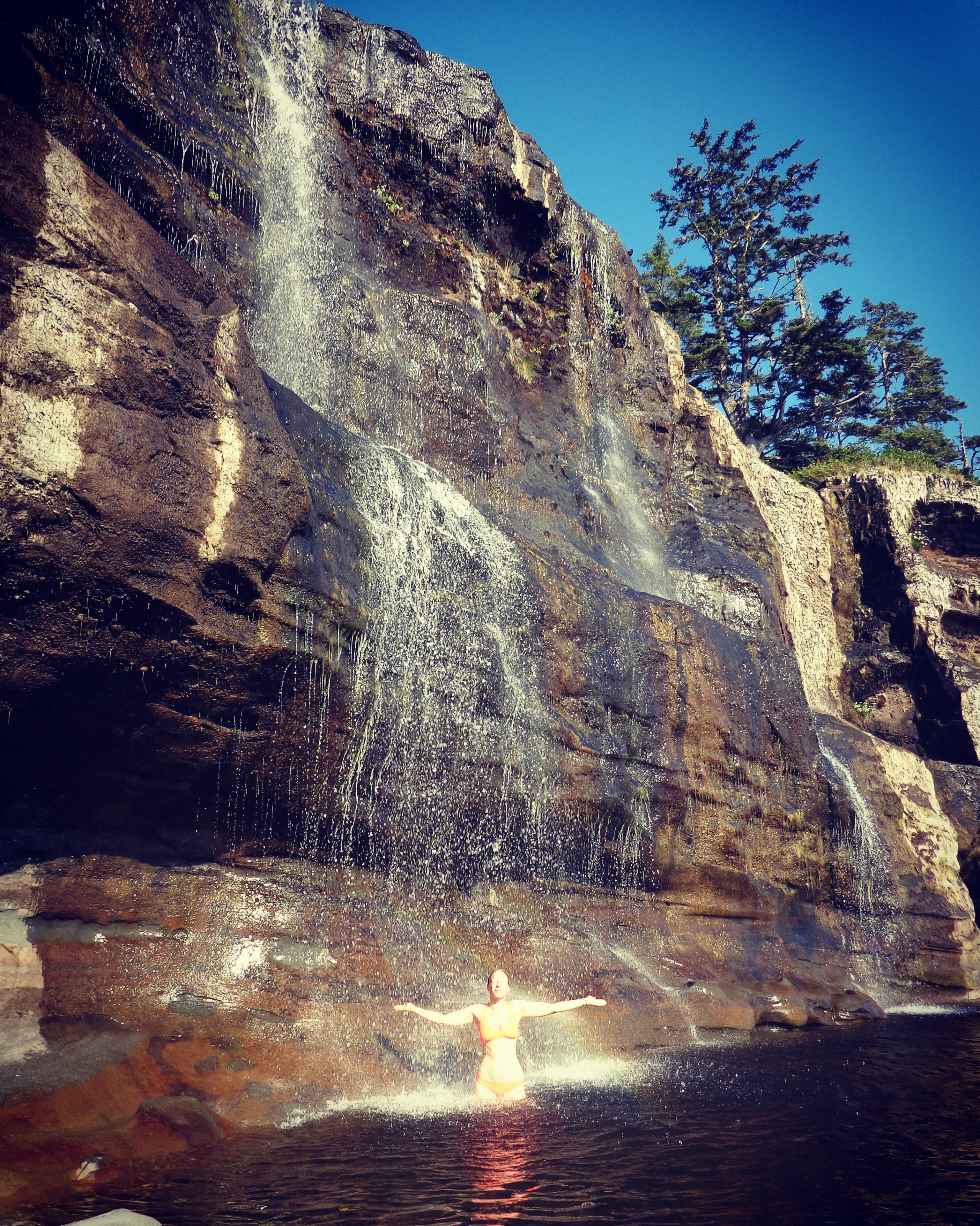 We walked, had breaks, enjoyed the beautiful landscape and finally got to the next camp, Tsusiat Falls. One of the highlights I was really looking forward to as I love waterfalls. This one was special. The cliff where the water sweeps down is situated right at the beach, 20 meters off the ocean. That night we had a waterfall shower with ocean view. Doesn’t get any better.